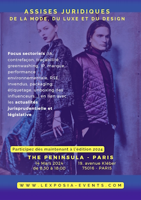 Le jeudi 14 mars 2024 prochain, l’hôtel The Peninsula Paris accueillera les Assises juridiques de la mode, du luxe et du design pour sa quatrième édition, organisée par Lexpo